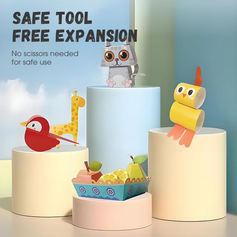 CONCEPTION SÉCURISÉE ET SANS OUTIL : La sécurité est une priorité absolue. Le livre utilise un procédé de découpe prédécoupée avec des lignes intégrées, éliminant ainsi le besoin de ciseaux. Idéal pour les jeunes enfants, il leur permet de s'adonner à l'origami sans risque de coupures, offrant une tranquillité d'esprit aux parents.
