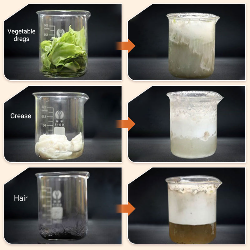 DÉBOUCHAGE PUISSANT : Débouche rapidement les obstructions tenaces, notamment les cheveux, les restes de nourriture, la graisse, etc. Rétablit facilement le débit, évitant ainsi les obstructions fréquentes et les problèmes de plomberie.