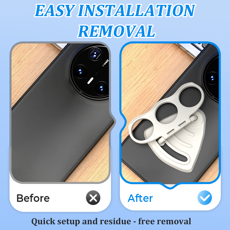 EASY TO INSTALL & REMOVE: Installing the ring holder on your phone is a breeze. Simply peel off the adhesive backing on the triangular base and stick it firmly to the back of your phone. When you want to remove it, it can be easily peeled off without leaving any residue, ensuring your phone remains in good condition.