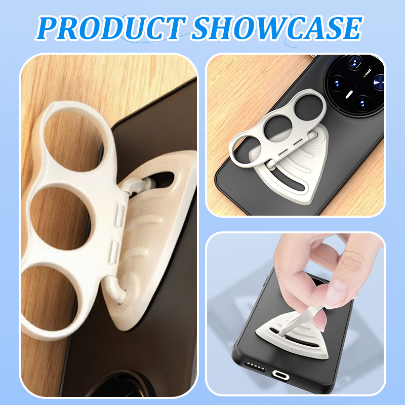 SECURE GRIP & STABILITY: The Holder Stand features a unique three - ring design that provides a firm and non - slip grip on your phone. This ensures your device stays securely in place, whether you're holding it, watching videos, or using it hands - free. The triangular base sticks firmly to the back of your phone, giving you confidence during use.