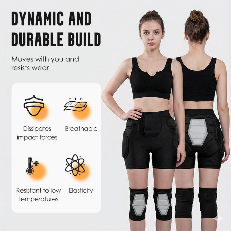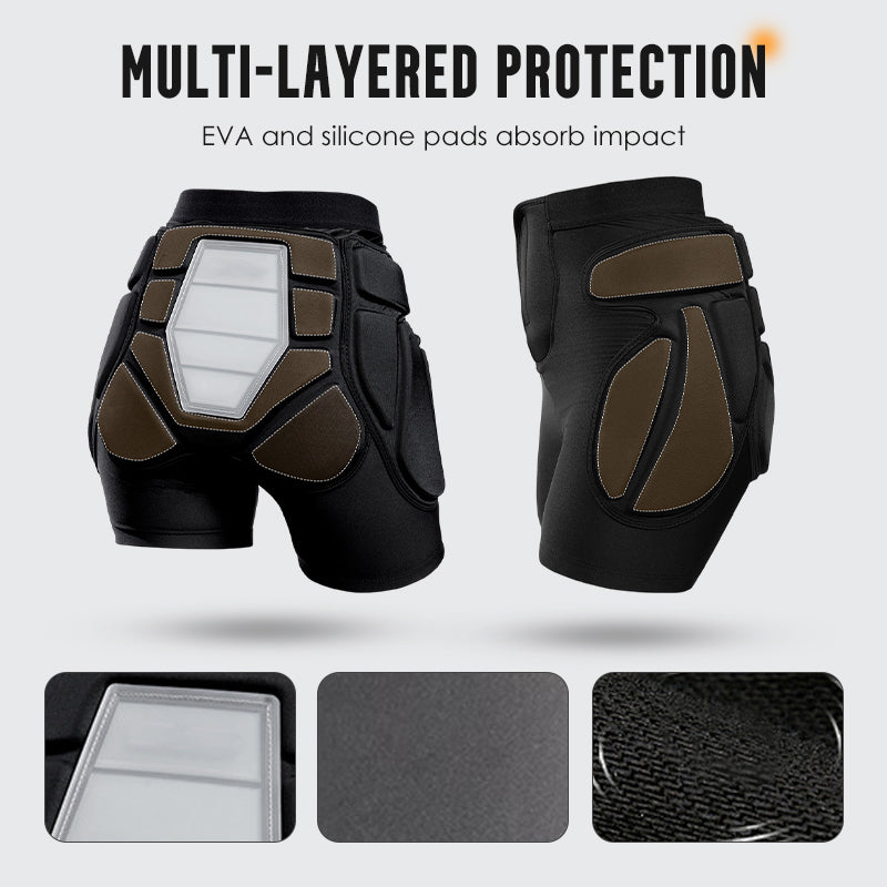 PROTECTION MULTICOUCHE – Les rembourrages en silicone et EVA haute densité, placés stratégiquement, absorbent et dispersent la force de l'impact, offrant une sécurité exceptionnelle pour vos hanches, vos cuisses et votre coccyx lors des chutes, vous protégeant ainsi en toute confiance.