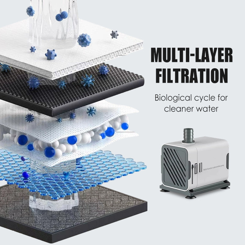 FILTRATION BIOLOGIQUE MULTICOUCHE – Conçue avec plusieurs étapes de filtration, la pompe crée un cycle d’eau continu pour éliminer efficacement les impuretés. En simulant la circulation écologique naturelle, elle favorise des conditions aquatiques plus saines pour les poissons et les plantes. Ce système multicouche améliore la clarté de l’eau, réduit les besoins en entretien et prolonge la durée de vie de votre installation aquatique.