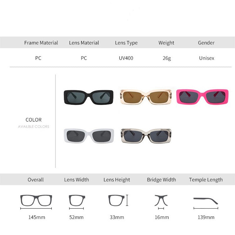 Introducing our Summer Simple Square-Frame Lightweight Sunglasses, the perfect accessory to elevate your style while protecting your eyes. These sunglasses feature a sleek and modern square frame design that adds a touch of sophistication to any outfit. Crafted with lightweight and durable PC materials, they are comfortable to wear all day long. Whether you're heading to the beach, enjoying outdoor activities, or simply running errands, these sunglasses provide both fashion and functionality. Step out in style and shield your eyes from the sun's rays with our trendy and reliable square-frame sunglasses.