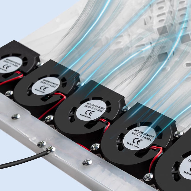 5 VENTILATEURS PUISSANTS : Équipé de cinq ventilateurs puissants, ce coussin de siège assure une expérience de conduite fraîche et sèche même pendant les journées les plus chaudes. Les ventilateurs réduisent efficacement la chaleur et l’humidité, favorisent la circulation de l’air et ventilent les fessiers et les cuisses, améliorant ainsi le confort global.